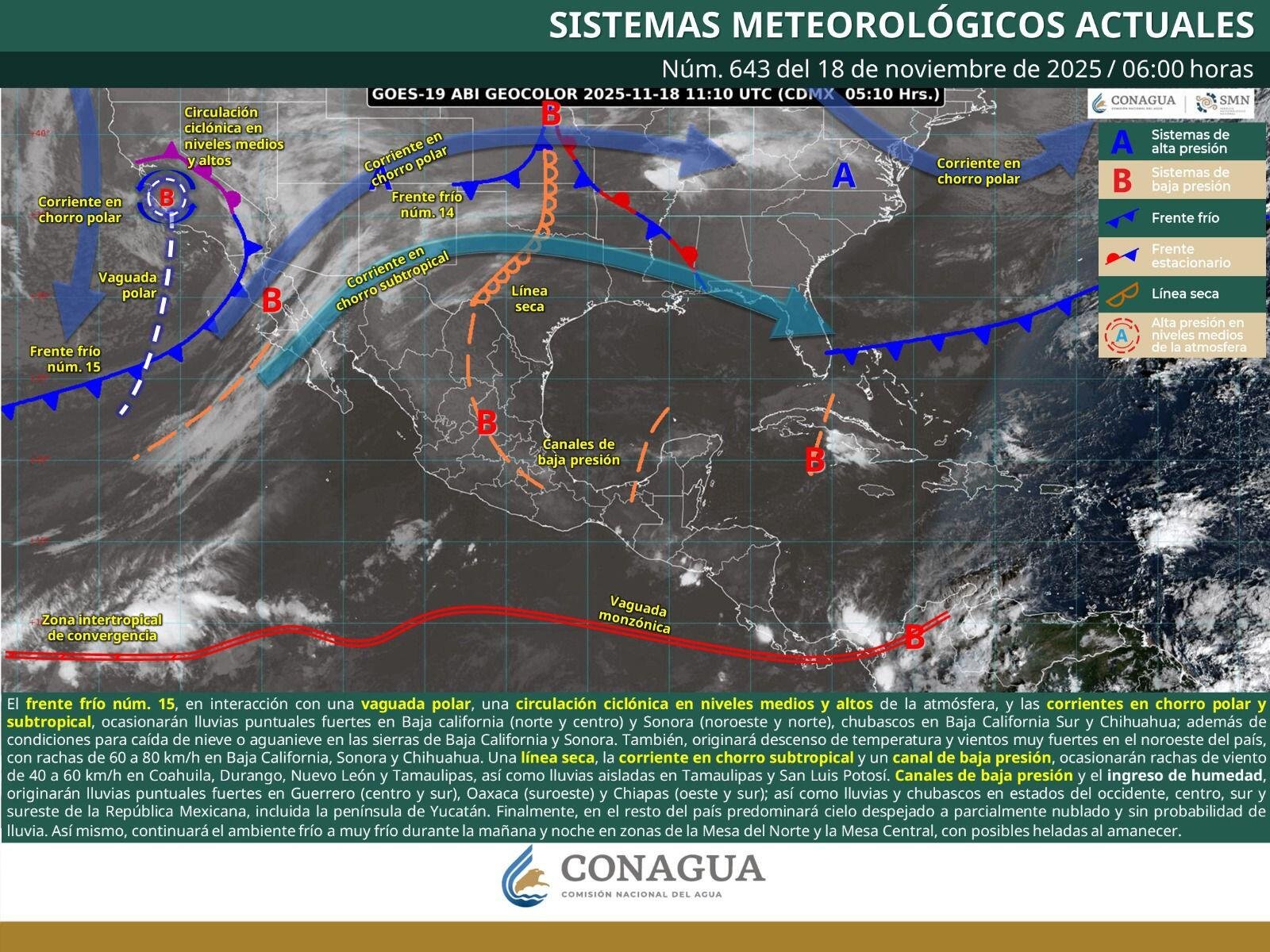 * El frente frío número 15 se aproxima al oeste de la República Mexicana y...