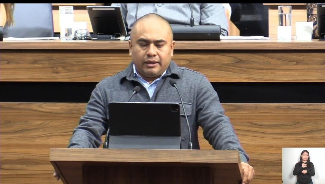 Durante la sesión de la Diputación Permanente en el Congreso de Oaxaca, el diputado del...