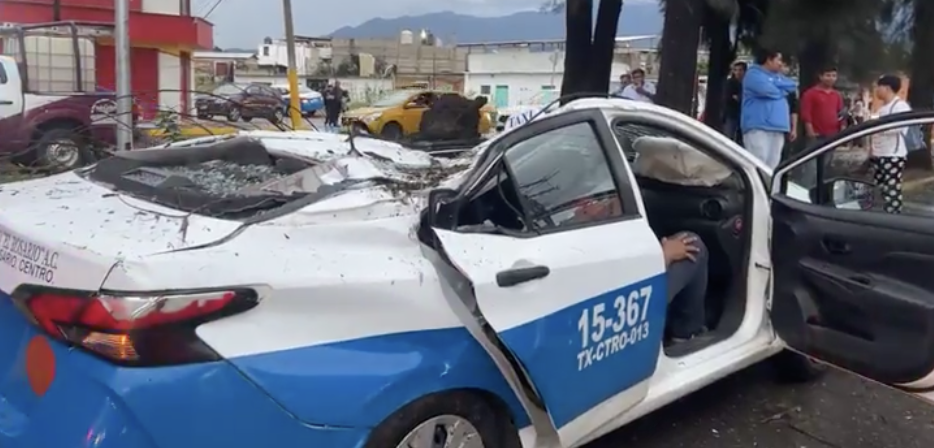 Ocupantes de una unidad de transporte público, de los llamados taxis azules de Santa Lucía...