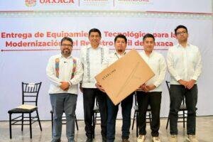 Oaxaca de Juárez, Oax. diciembre de 2025.- Con una inversión superior a 11 millones de pesos, el Gobernador Salomón Jara Cruz entregó equipamiento tecnológico para la modernización de las 158 oficialías del Registro Civil de Oaxaca, lo que representa un paso firme hacia un servicio público más digno, eficiente y humano.