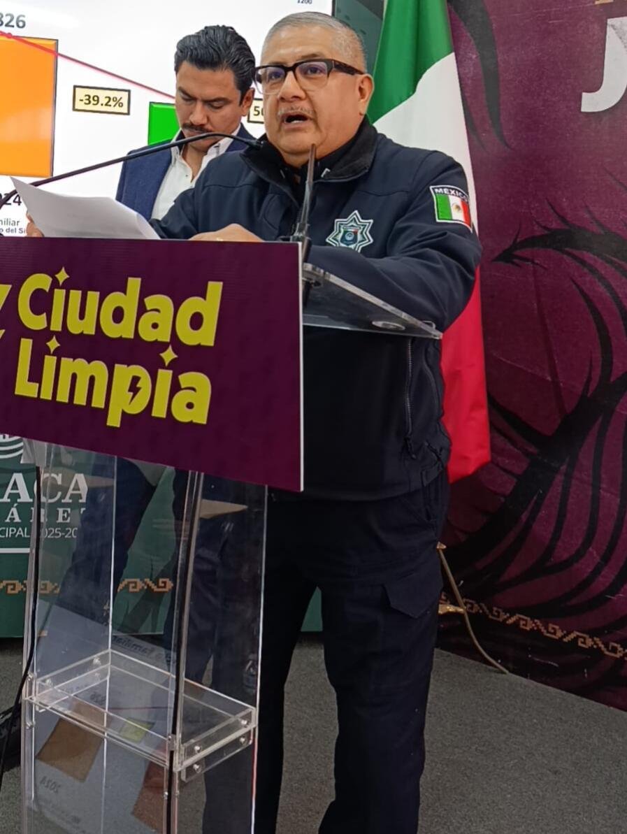 Oaxaca de Juárez. En conferencia de prensa encabezada por Ray Chagoya, el teniente Claudio Pérez y Pérez, secretario de Seguridad Vecinal del Municipio de Oaxaca de Juárez, presentó los resultados oficiales del Secretariado Ejecutivo del Sistema Nacional de Seguridad Pública, que confirman una reducción significativa en la incidencia delictiva durante el año 2025, en la ciudad.
