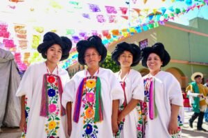 La festividad inició con los acordes de “Dios nunca muere”, himno que dio paso a un colorido convite por las calles de Betaza, encabezado por la representante de la Diosa Centéotl 2025, Patricia Casiano Zaragoza.