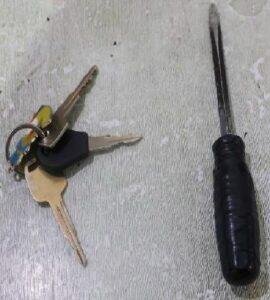 Sin embargo, luego cambió su versión y dijo que había olvidado las llaves en otro lugar. En ese momento, observaron que tanto la chapa y manija presentaban daños.