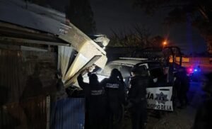 Etla, Oaxaca.- Elementos de la Policía Municipal protagonizaron un accidente durante la madrugada de este día, luego de que la unidad en la que se trasladaban se impactara contra una vivienda construida con lámina en este municipio.