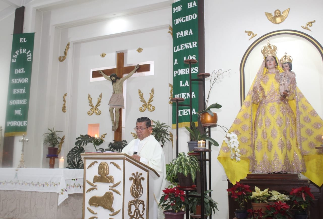 Parroquia de Nuestra Señora del Rosario, Oax., Enero 24, 2025. “El Espíritu del Señor está sobre mí, porque me ha ungido para llevar a los pobres la buena nueva”, consignaba la palabra del Evangelio, a través de dos lienzos ubicados en el altar de este templo parroquial de esta unidad habitacional, en el marco de la celebración Eucarística, presidida por el presbítero Ricardo Vásquez Ojeda, para con ello, transmitir y llevar el Evangelio a todas y todos los católicos de esta demarcación perteneciente a San Sebastián Tutla.
