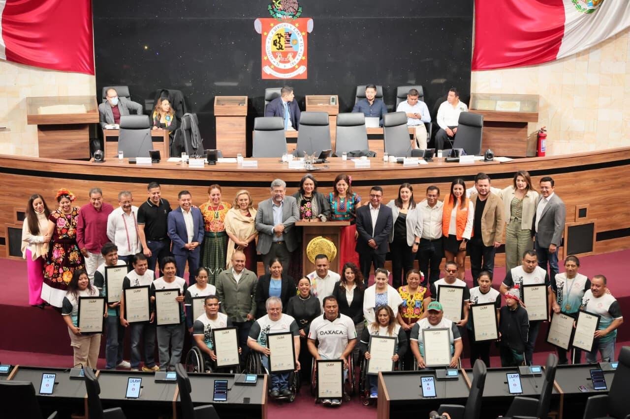 En el marco de la Conmemoración del Día Internacional de las Personas con Discapacidad, la LXVI Legislatura del Congreso del Estado de Oaxaca celebró una Sesión Solemne para rendir homenaje a las y los integrantes de la Asociación de Medallistas Paralímpicos Mundialistas y Panamericanos del Estado, quienes han colocado en alto el nombre de la entidad a través del deporte adaptado.
