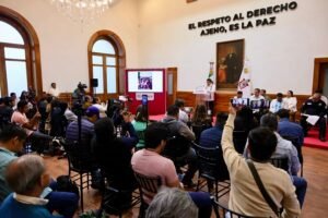En conferencia de prensa, el Mandatario estatal expresó que la eventual imposición del 25 por ciento de aranceles a las exportaciones provenientes del país, es una medida que resulta ineficaz para atender las problemáticas que se suscitan en el país vecino, además de que debilita a la región de América del Norte.