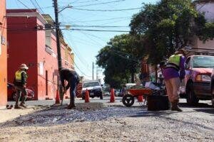 Como parte de estas acciones, se llevan a cabo trabajos de bacheo en la calle Cuauhtémoc, esquina con Manuel Ávila Camacho, así como en vialidades del Centro Histórico, entre ellas Mier y Terán, Rayón, y tramos de las calles Perú, Argentina, Venezuela, Costa Rica y Pensamientos, en la colonia Reforma.