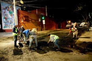 Como parte de estas acciones, se llevan a cabo trabajos de bacheo en la calle Cuauhtémoc, esquina con Manuel Ávila Camacho, así como en vialidades del Centro Histórico, entre ellas Mier y Terán, Rayón, y tramos de las calles Perú, Argentina, Venezuela, Costa Rica y Pensamientos, en la colonia Reforma.