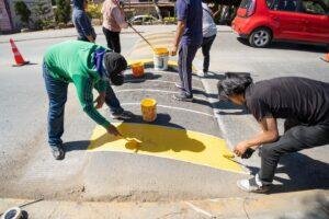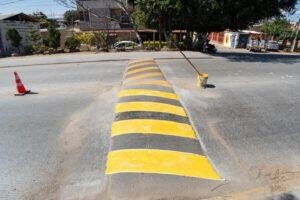 Por instrucciones del edil, la Dirección de Transporte y Movilidad Urbana, en coordinación con personal del Ayuntamiento, realiza trabajos de pintura de topes en la avenida Heberto Castillo. Esta acción forma parte de un programa que contempla intervenir otras zonas del municipio, con el objetivo de garantizar una movilidad más segura y ordenada para todas y todos.