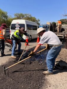 Atendiendo la solicitud de vecinas y vecinos este día se realizaron trabajos en carretera al Cerro del Fortín a la altura de crucero del Monumento a la Madre; así mismo para mejorar la circulación y brindar mayor seguridad a peatones y automovilistas, en los últimos días se realizaron trabajos de bacheo en la calle Félix Romero de Matías Romero a del Trabajo de la colonia La Cascada.