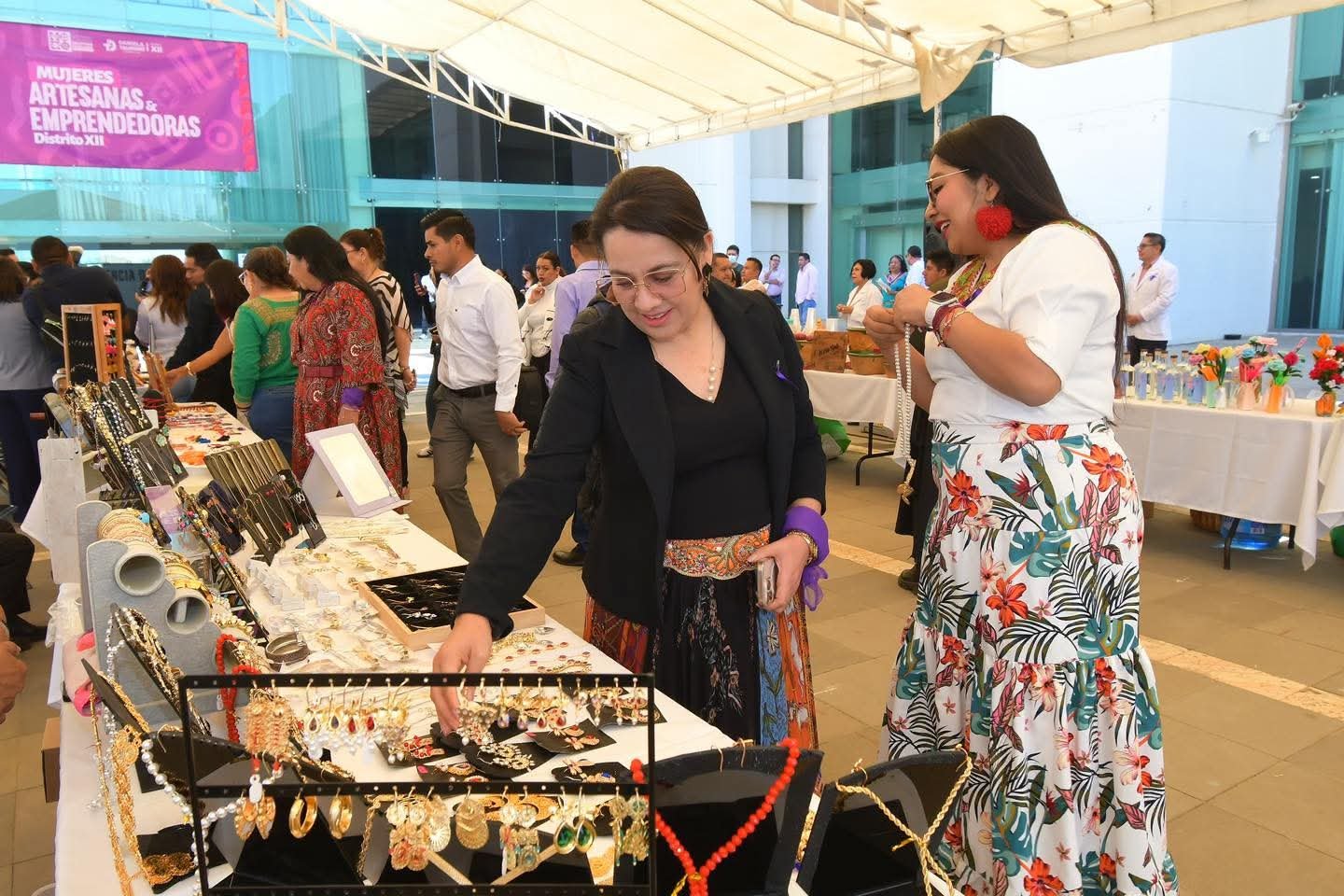 La presidenta de la Jucopo, Tania Caballero Navarro, abrió el encuentro con un mensaje que sonó a compromiso: “Este Congreso siempre tendrá las puertas abiertas para las mujeres y para impulsar sus negocios”. A su lado, la presidenta de la Mesa Directiva, Eva Diego Cruz, subrayó que cada pieza expuesta era testimonio de la riqueza cultural y económica que sostienen las comunidades.